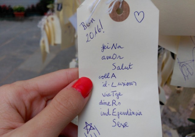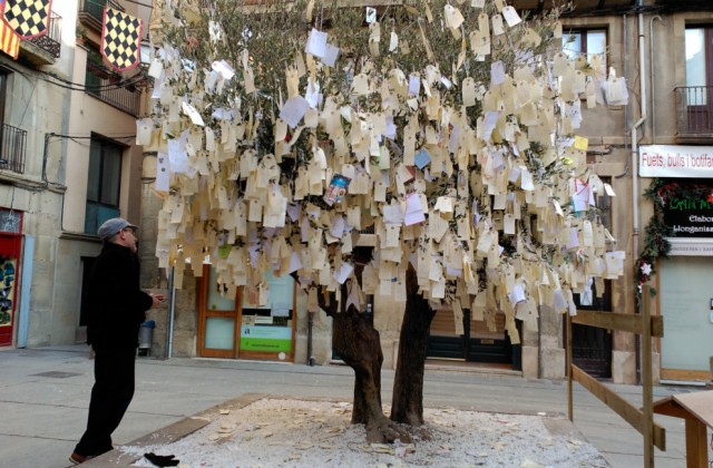 escriure desitjos i penjar-les a l'arbre que hi ha a la Plaça del Pes, al costat de la Plaça Major de Vic.