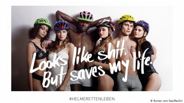 Estirada sobre el llit en roba interior però amb casc de bicicleta... Per increïble que sembli el govern d’Alemanya va escollir aquesta imatge per una campanya que pretén conscienciar els joves ciclistes de la necessitat de posar-se casc. A més d'aquesta fotografia, també se'n poden veure d'altres on apareixen diversos joves en roba interior.