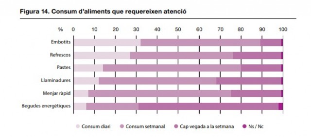 ens centrarem en els resultats sobre els hàbits alimentaris: us explicarem alguns dels aspectes més destacats de l'informe sobre aquest àmbit. Aquest, però, no serà l'únic article que farem sobre l'estudi. Més endavant publicarem nous textos enfocats en els altres blocs temàtics de la investigació.
