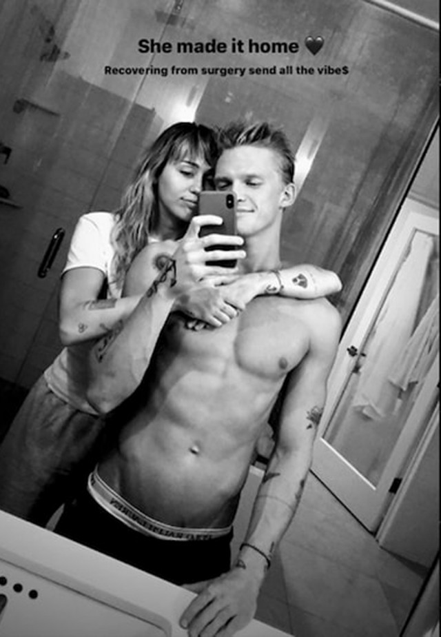 TMZ publicava aquesta setmana una foto dels dos fent-se un petó i la mateixa Miley compartia a Instagram una foto dels dos agraint el suport d'ell aquests dies que s'està recuperant d'una operació d'angines.