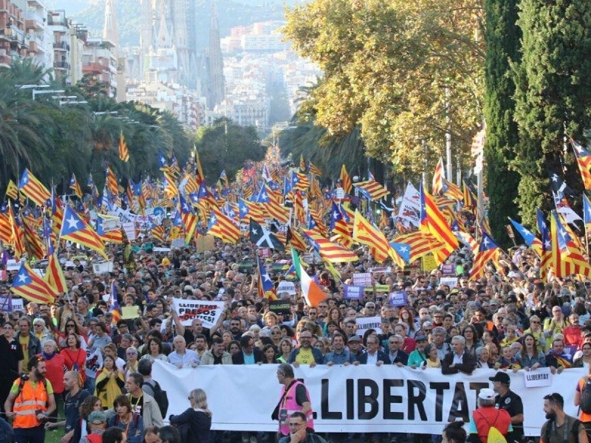 el clam "Llibertat". 350.000 persones han omplert el carrer Marina de Barcelona responent la crida d'un centenar d'entitats -entre les quals l'Assemblea Nacional Catalana (ANC) i Òmnium Cultural- que interpel·len tots els contraris a la sentència del Tribunal Suprem.