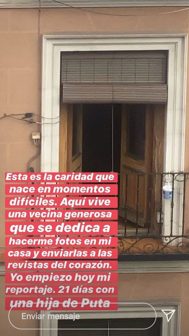Jo començo avui el meu reportatge: 21 dies amb una filla de p***". Aquest és el text a Jaime Lorente ha publicat a les xarxes, acompanyat d'una imatge de la façana de la seva veïna.