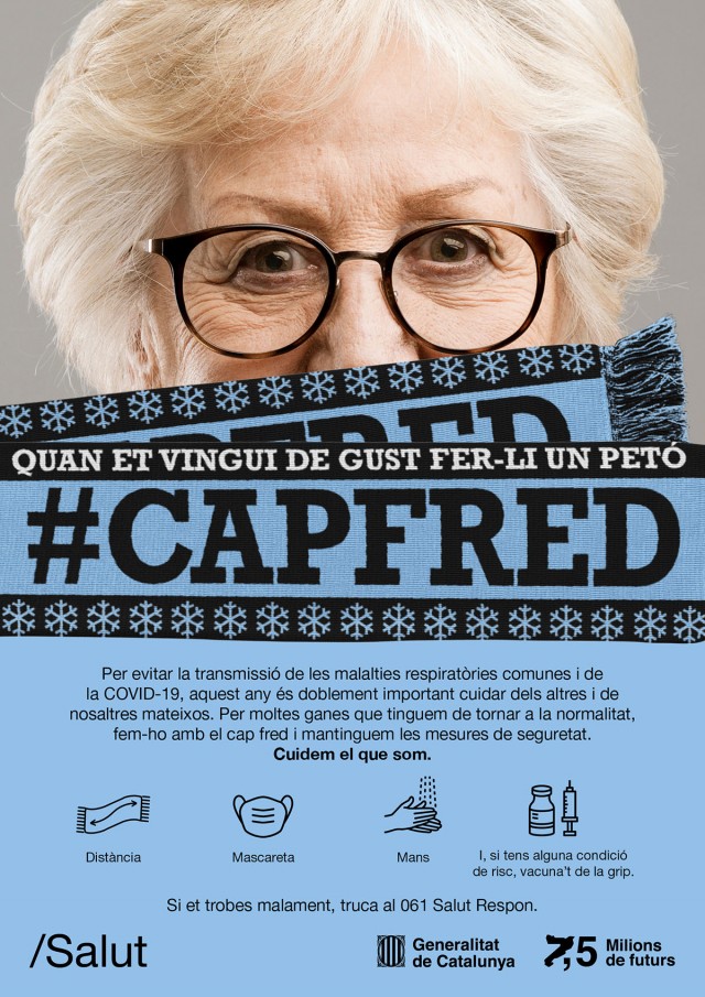 campanya #Capfred per conscienciar la ciutadania que enguany, en plena pandèmia de la COVID-19, és més important que mai la prevenció de la grip i d’altres malalties respiratòries d’hivern.
