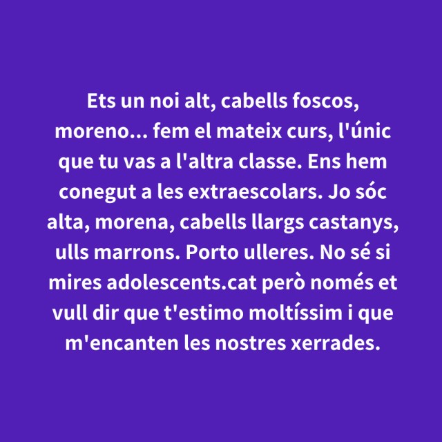 Adolescents.cat vam activar les indirectes. Una secció on tothom podia llençar un missatge de manera anònima a persones del seu entorn o el seu dia a dia. Seguint amb la mateixa filosofia, ara