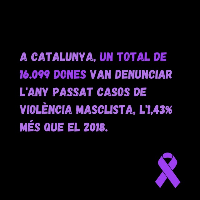 Eliminació de la Violència contra les Dones. Segons un informe publicat el 2019, el 41,4% de les dones enquestades a Catalunya han estat víctimes de violència masclista en l'àmbit de la parella al llarg de la seva vida i un 50,9% manifesta haver patit assetjament sexual. Us portem més dades sobre aquesta problemàtica.