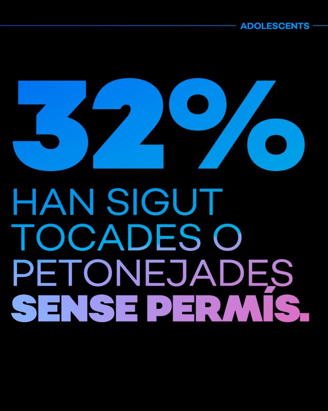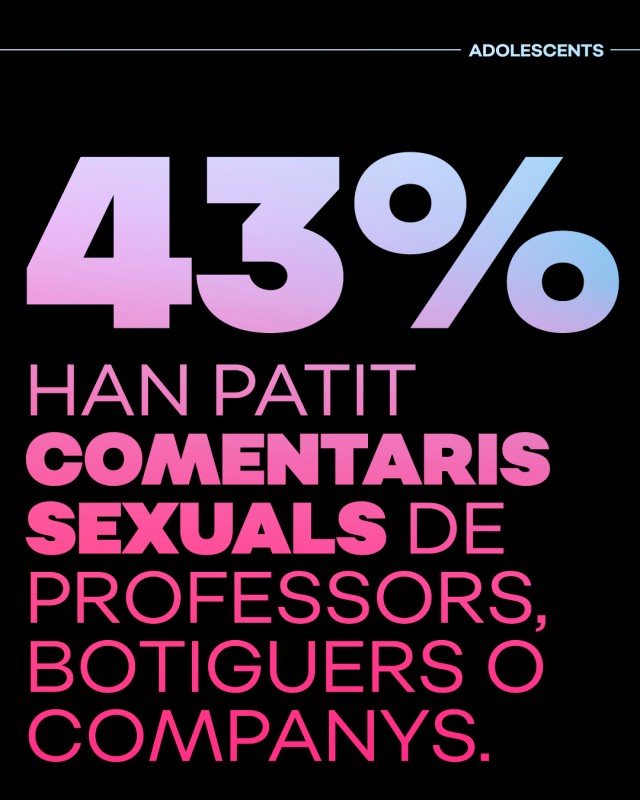 Un 32% de les adolescents residents a Catalunya han estat tocades o petonejades sense permís i un 43% han patit comentaris sexuals per part de companys de classe, professors i/o botiguers.