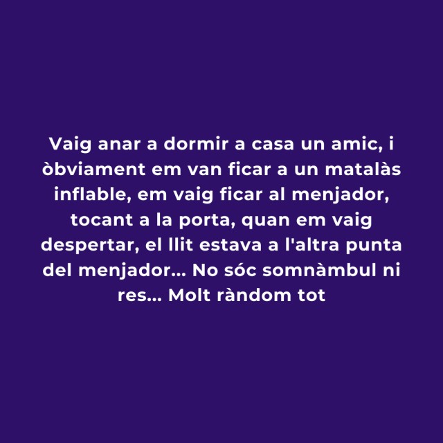 quina és l'experiència més estranya que heu viscut mai en un llit? Aquestes són algunes de les respostes que ens vau enviar. Al formulari que trobareu més avall, ens podeu explicar noves experiències.