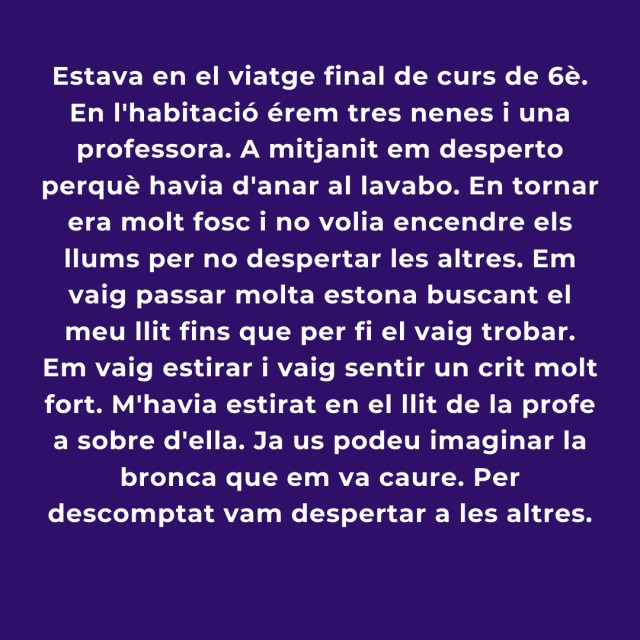 quina és l'experiència més estranya que heu viscut mai en un llit? Aquestes són algunes de les respostes que ens vau enviar. Al formulari que trobareu més avall, ens podeu explicar noves experiències.