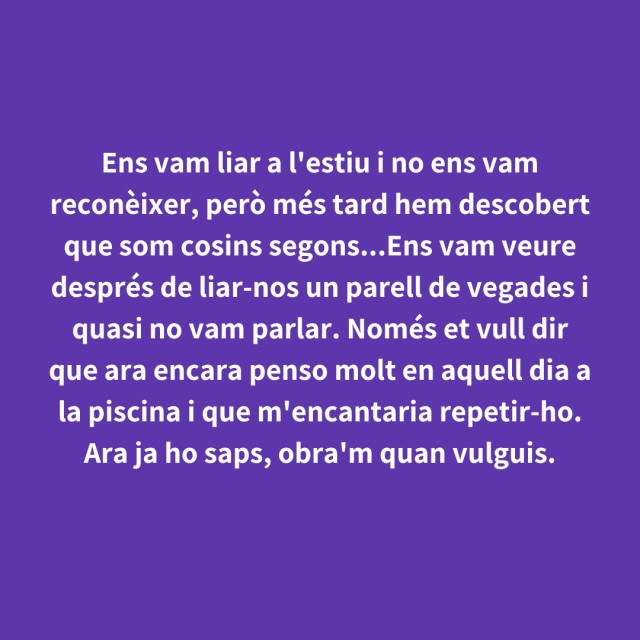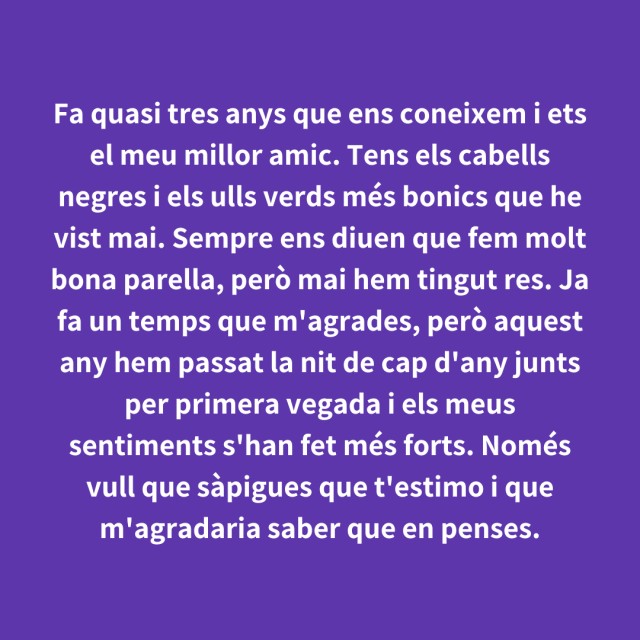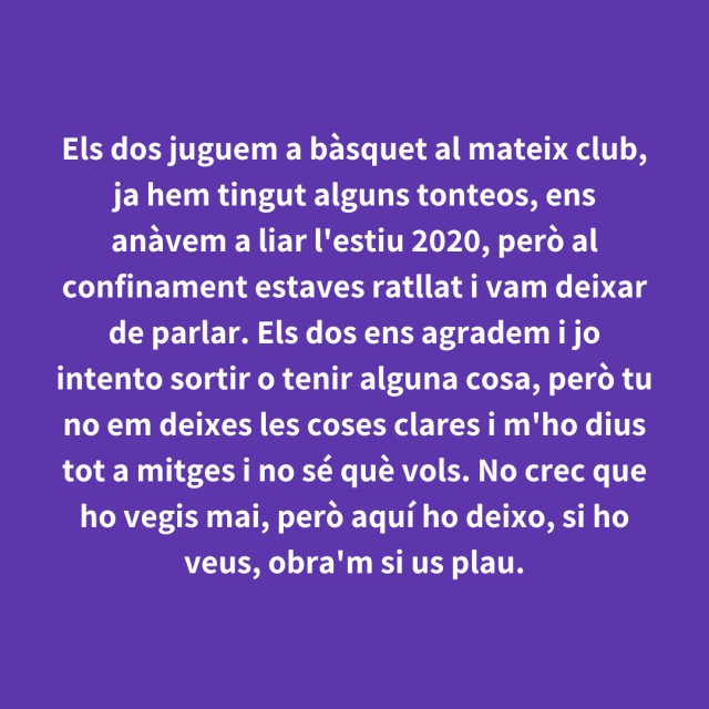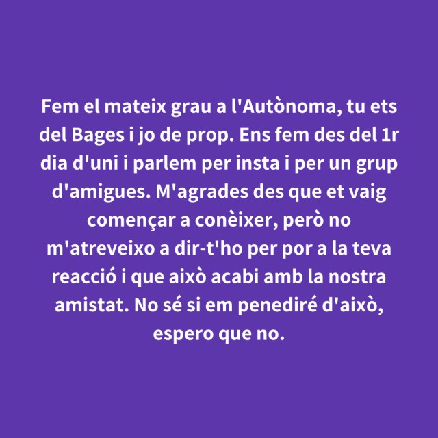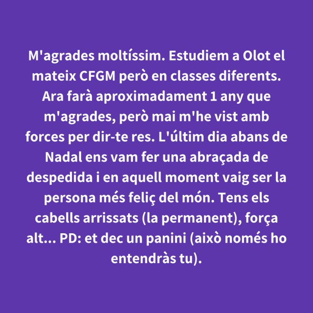 us proposem fer arribar aquestes indirectes als vostres «crush». Potser és algú que coneixes i va al mateix institut que tu, però un «crush» pot ser aquella persona amb qui vas coincidir a la cua d'un McDonald's, us vau mirar, us vau somriure, però no us vau dir res. I ara, clar, necessites saber qui és!