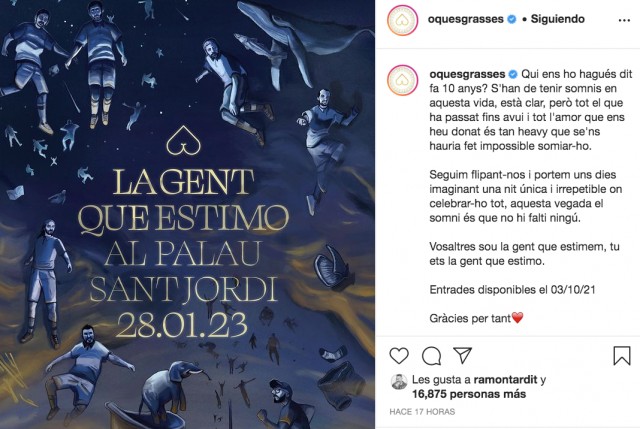 El grup ha anunciat el concert a través d’Instagram on han assegurat que fa 10 anys mai s’haurien imaginat arribar fins aquí. “S'han de tenir somnis en aquesta vida, està clar, però tot el que ha passat fins avui i tot l'amor que ens heu donat és tan heavy que
