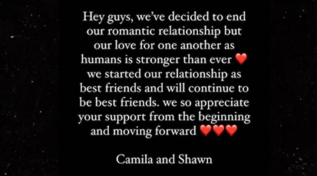 Camila Cabello i Shawn Mendes ja no estan junts. Així ho han anunciat ells mateixos a través d’un comunicat conjunt que han compartit a les xarxes socials.