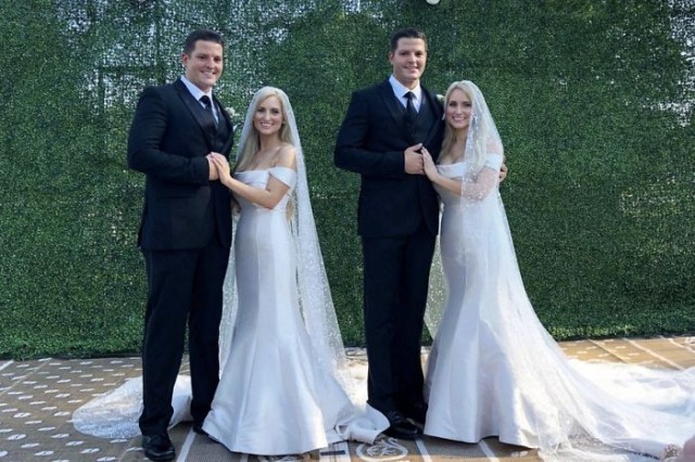 No, la imatge que esteu veient no està retocada amb Photoshop. L'escena que hi apareix és el casament doble del Josh i el Jeremy Salyers amb la Brittany i la Briana Deane. Dues parelles que es van enamorar durant el