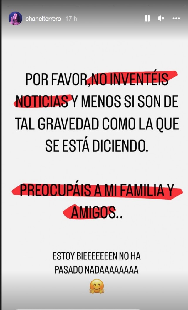 Preocupeu la meva família i amics. Estic bé i no ha passat res", argumentava Chanel en el mateix missatge.