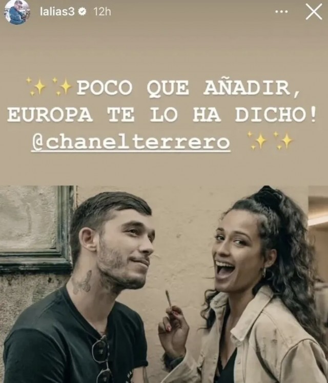 músic i exactor de "Los Serrano", Víctor Elías, l'actual parella de l'Ana Guerra. Van estar junts uns mesos i, tot i haver decidit seguir camins diferents, se segueixen tenint un gran afecte. Així ho mostrava ell amb el missatge que va compartir al seu Instagram després que Chanel es posicionés en tercer lloc: