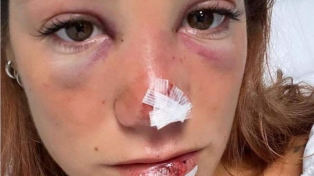 Després de l'impacte, la jove, de 29 anys, va caure a la via i va colpejar-se fortament la cara, com es pot veure a la fotografia que va publicar.