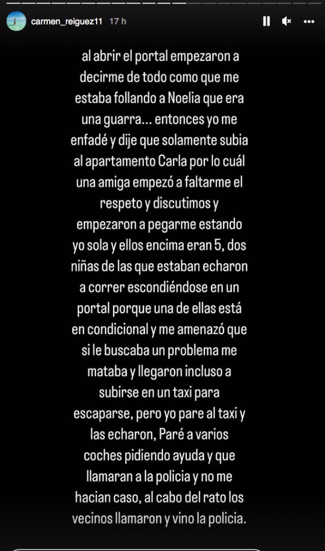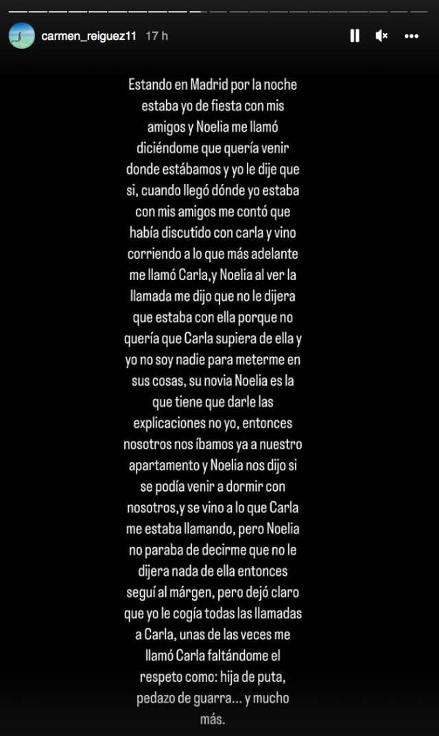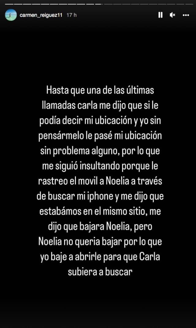 En aquest sentit, la Carmen també ho publicat diveres stories confirmant la versió de la Noelia i donant més detalls.