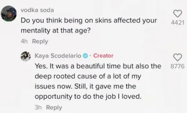 Tot i les similituds, Kaya Scodelario, una de les actrius d'Skins, té clar que la sèrie que va protagonitzar era més "dura" que Euphoria. En un TikTok que s'ha fet viral, l'artista es grava mirant la producció de Zendaya i escriu: "Veient Euphoria per primera vegada i pensant que això és molt boig per a persones de 17 anys....després però recordant que jo ho feia quan només en tenia 14".