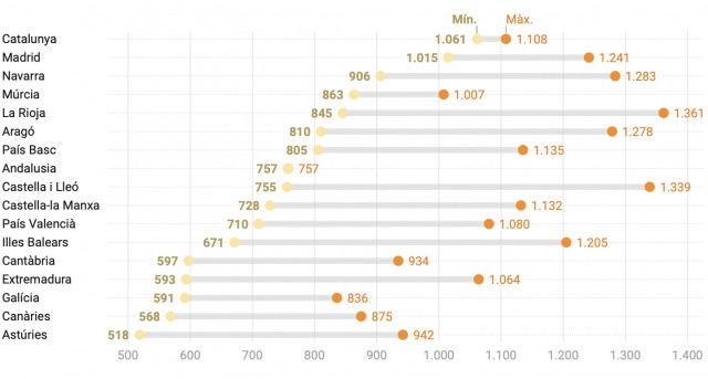 la diferència de preus entre comunitats pot superar els 800 euros. En el cas d'Astúries, per exemple, es pot pagar 518 euros per una primera matrícula, mentre que en el cas de La Rioja es poden pagar fins a 1.361 euros.
