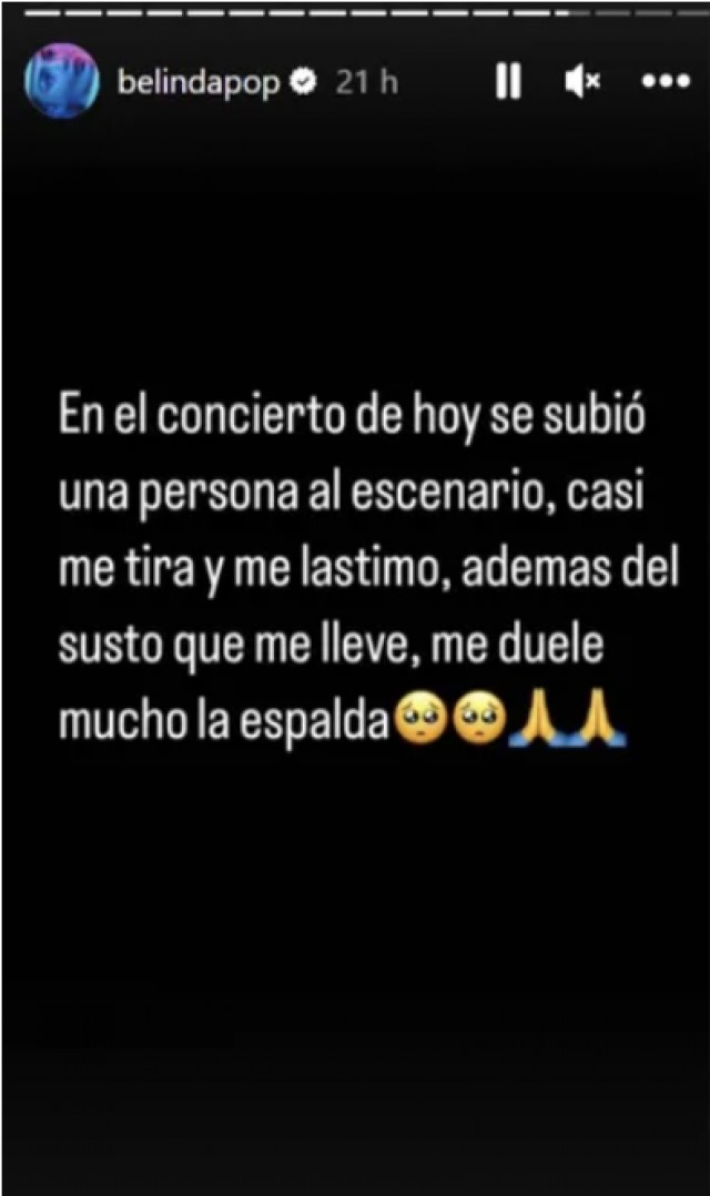 sé que la persona que va pujar ahir ho va fer amb bona intenció i l'eufòria possiblement va fer que no mesurés la seva força, jo estic bé, només em vaig espantar en el moment, la qual cosa és normal, estimo molt a tots i cadascun dels que van ser ahir al concert i els que m'acompanyen cada dia de la meva carrera".
