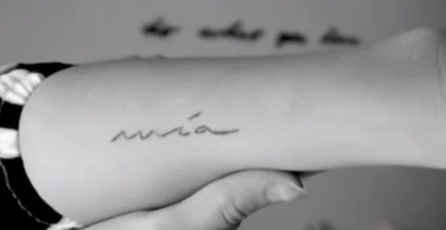Al braç hi porta escrita la paraula "mía", el títol de l'article que la seva exparella li va dedicar. Un altre d'ells està relacionat amb la seva història d'amor, es tracta de les