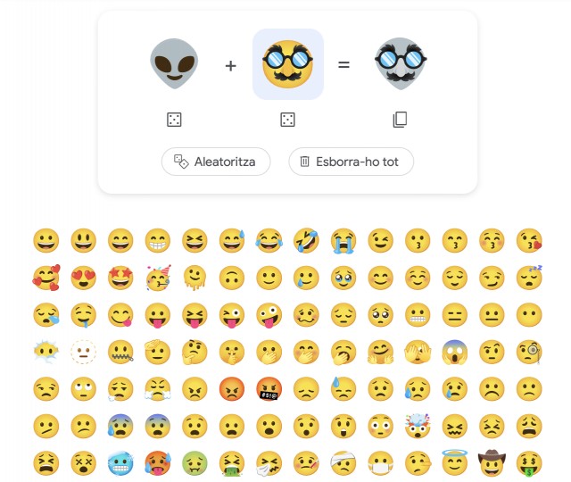 Hi ha més de 230 emojis per combinar. Des de Google mateix podràs seleccionar quins vols combinar i, si no ho tens clar, pots fer-ne un d'aleatori.