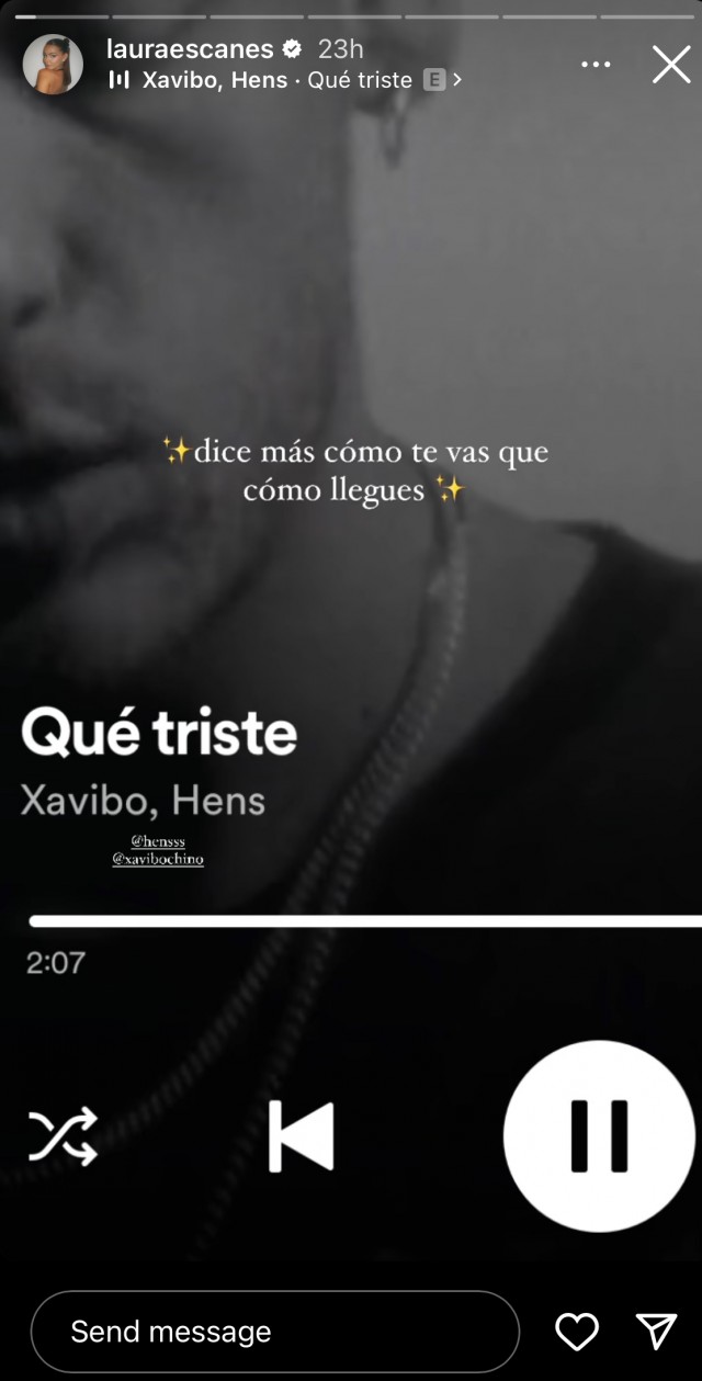 Ella, per la seva part, ha reaccionat a la cançó amb una altra cançó. Concretament, "Qué triste" de Xavibo i Hens. Ha acompanyat la captura amb el següent missatge: "Diu més com marxes que com arribes".