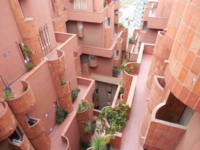 Encara que les escales de colors no són tan prominents com en els dos exemples anteriors, la sensació de laberint i la combinació de textures i tonalitats cridaneres és una característica comuna que fa que aquest conjunt d'habitatges també pugui evocar l'arquitectura fictícia de la sèrie.